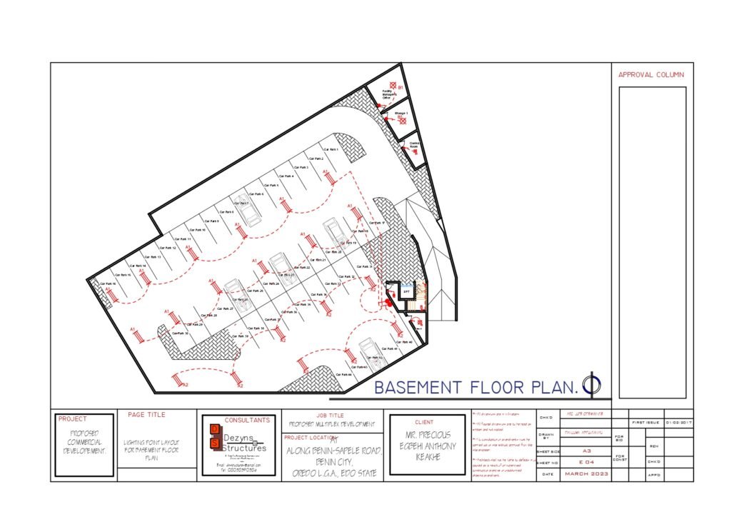 The basement of the WinnersVille Multiplex is designed for Car parking with a capacity for 44 Cars to be conveniently parked. It also houses the Facility Manager’s Office, the Control room and Storage Rooms. It is designed in a way that ensures controlled noise and elimination of distraction of activities in the other floors of the building.