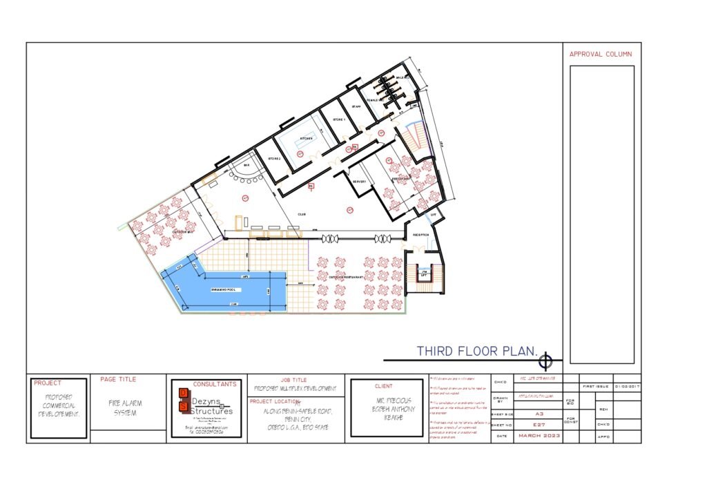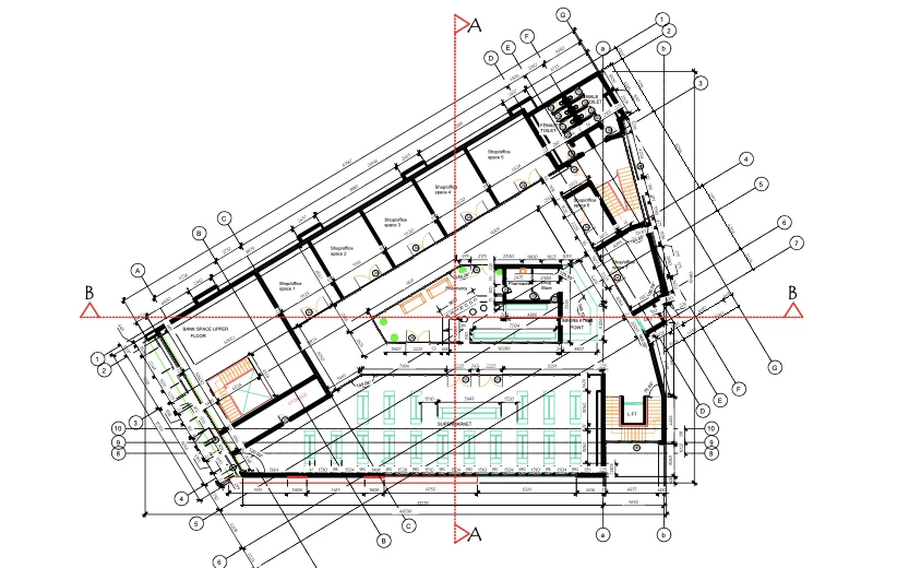 The First Floor of the Multiplex has the offices of the Bank, a Supermarket, a large pharmacy Shop and Seven other sizeable shops or offices for various purposes. There are also designated male and Female toilets to provide convenience for staff and shoppers alike.