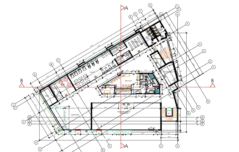 a food court and a bakery shop for meals and snacking purposes.